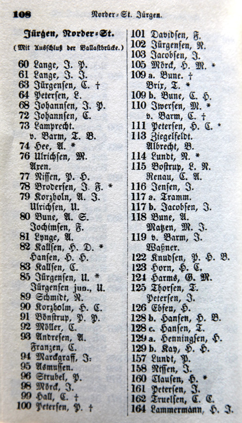![]() Bild: Adreßbuch 1847 Flensburg Seite 108 |