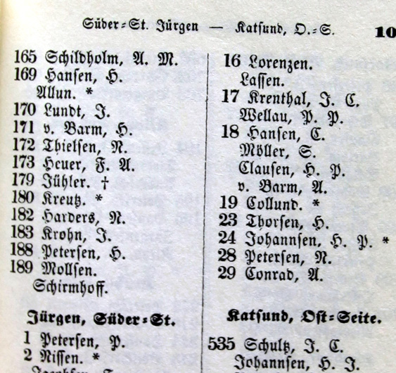 ![]() Bild: Adreßbuch Flensburg 1847 Seite 109 |